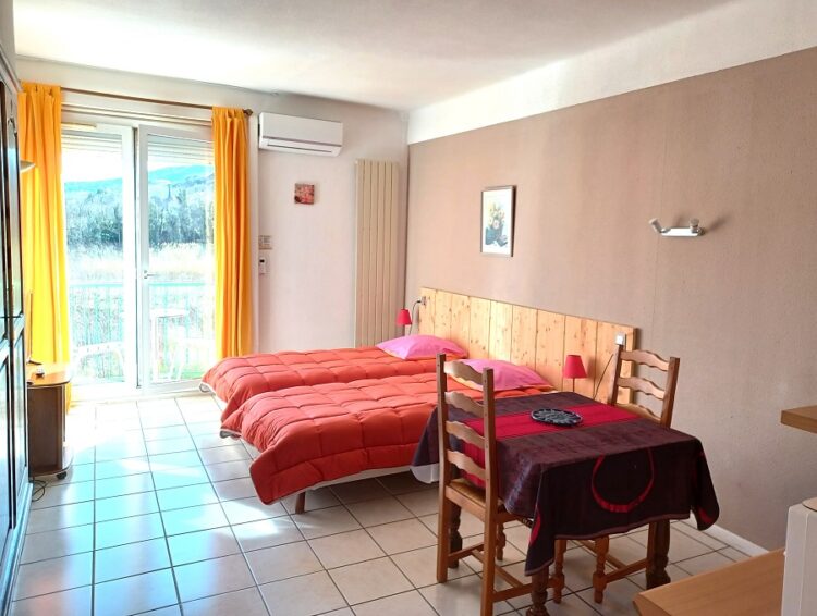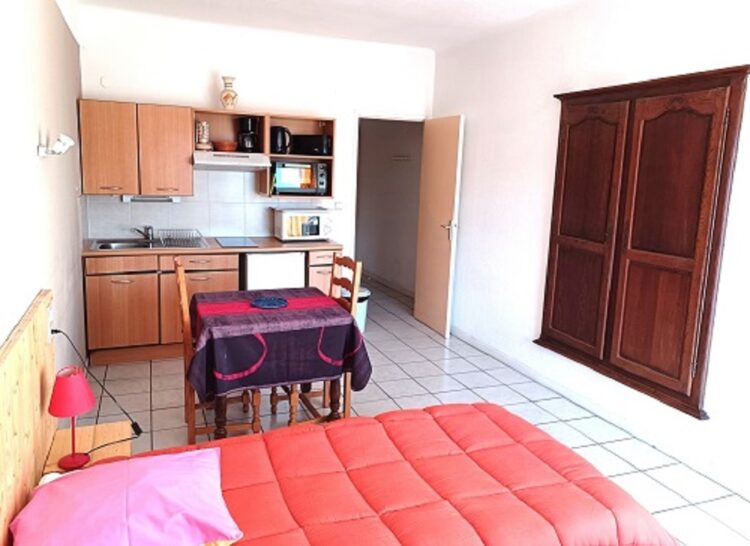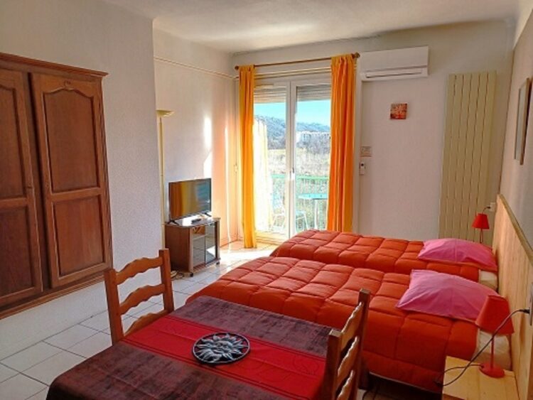 Studio, spacieux et lumineux de 30m², situé au 1er étage d'une résidence calme, avec un balcon offrant une vue panoramique sur la rivière. La pièce principale est composée d'un coin cuisine équipée et d'un coin nuit. salle d'eau et WC indépendant. Parking numéroté, wifi, climatisation, bibliothèque, buanderie, local à vélos. Accueil présent 6/7jrs. Piscine extérieure dans un jardin de 1000m2.